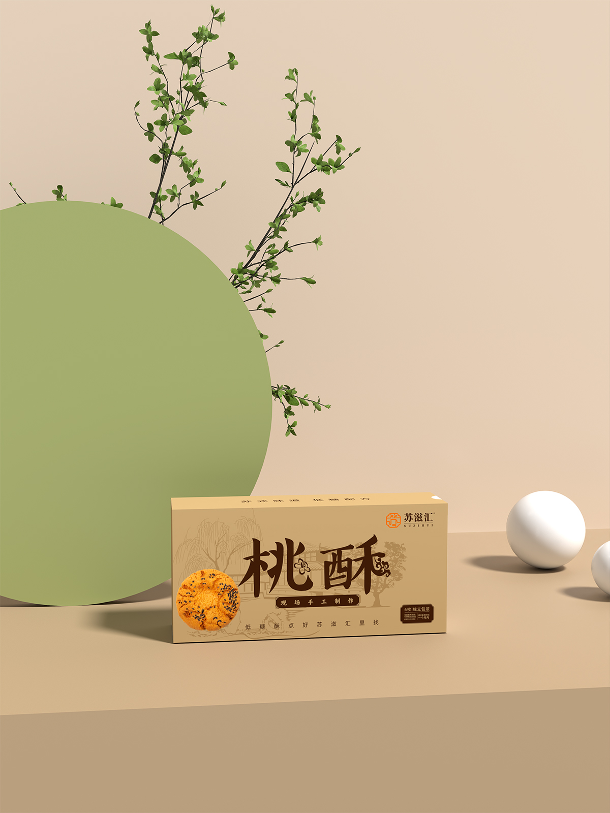 桃酥包裝設計系列,桃酥禮盒升級的關鍵在于.將品牌和產品內涵清晰可視化,讓桃酥成為詹記精神視覺文化符號。以蘇式文化深化品牌內涵,是本項目的策略關鍵。設計師重新梳理蘇滋味品牌文化和桃酥產品文化,借鑒蘇式工藝,在桃酥造型中進行刻畫,象征著桃酥獨到匠香的背后承載了詹記一路走來的風風雨雨和堅守的蘇商精神。以干、酥、脆而聞名,一口酥到掉渣,濃郁麥香混合著芝麻香,讓你感受到入口即化的美味。