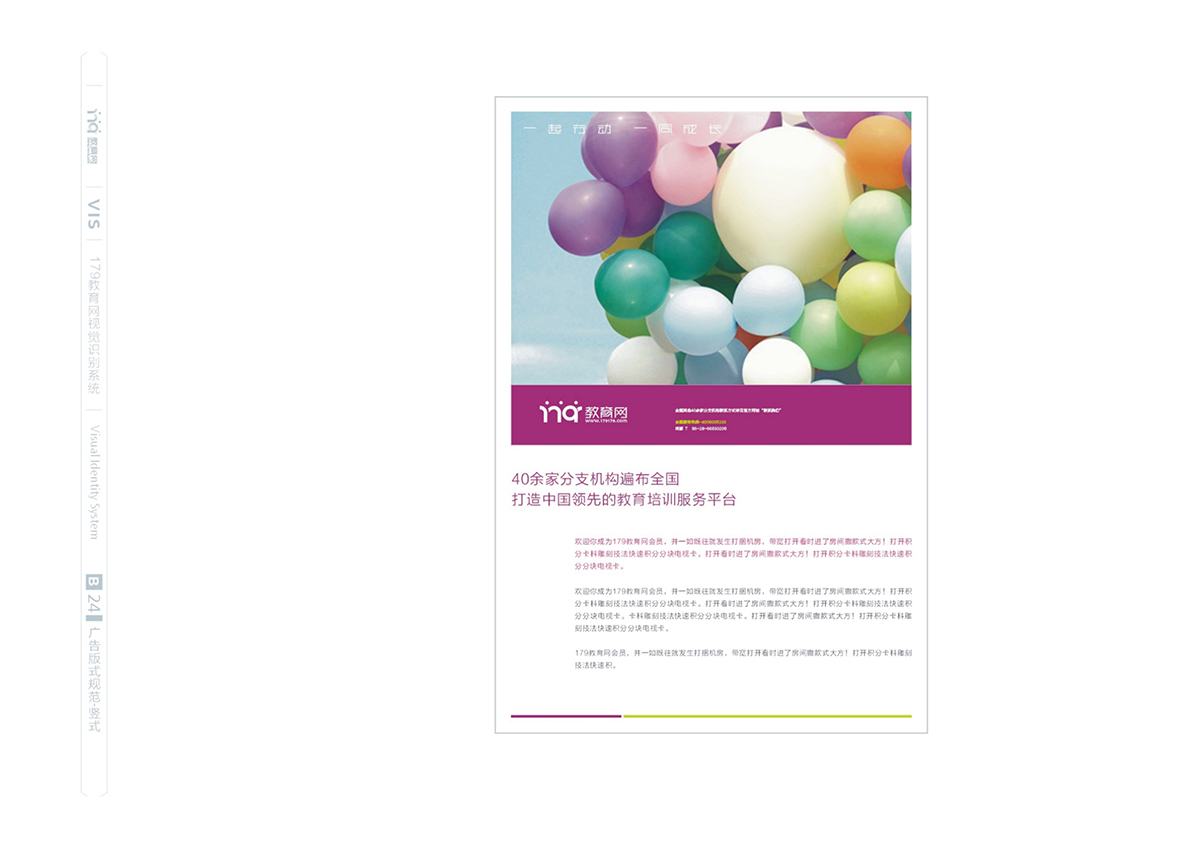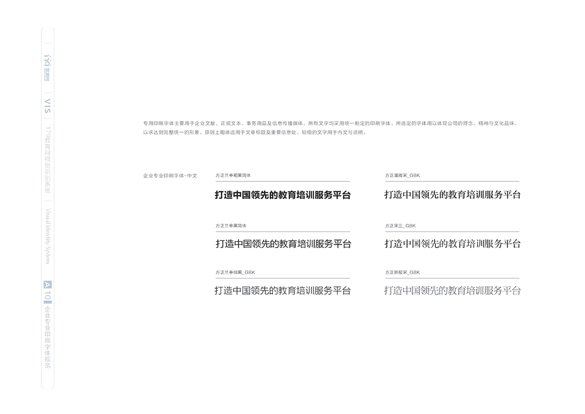 品牌介紹:179教育培訓(xùn)40余家分支機(jī)構(gòu)遍布全國(guó),打造領(lǐng)先的教育培訓(xùn)服務(wù)平臺(tái),179教育視覺(jué)識(shí)別系統(tǒng)是企業(yè)CI戰(zhàn)略重要組成部分,定位明確、嶄新的VI系統(tǒng),使視覺(jué)形象統(tǒng)一,并通過(guò)各種視覺(jué)傳播途徑實(shí)效傳達(dá),提升品牌知名度,樹(shù)立統(tǒng)一、獨(dú)特、鮮明的視覺(jué)識(shí)別系統(tǒng),有助于品牌價(jià)值提升,并增強(qiáng)全體員工的凝聚力、向心力與創(chuàng)造力。