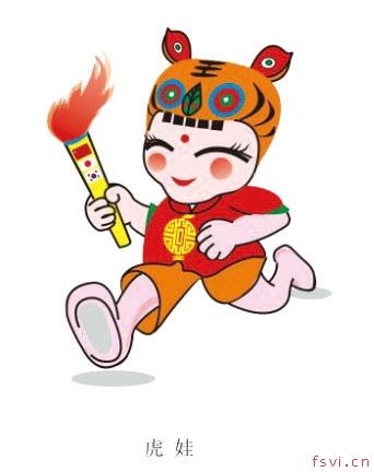 吉祥物“虎娃”是一位身穿中國傳統(tǒng)服飾的小姑娘手持火炬飛奔而來,祝賀本屆運(yùn)動(dòng)會(huì)的成功舉辦。吉祥物采用布老虎、唐裝等造型紋樣,極具中國傳統(tǒng)文化特色,布老虎形象也是濰坊民間美術(shù)文化的代表之一。虎娃跑步姿態(tài)協(xié)調(diào)而充滿動(dòng)感,充分顯示了運(yùn)動(dòng)的魅力;彎彎的眼睛、紅紅的嘴唇和臉龐的胭脂形成一張?zhí)鹈赖男δ槪灿朔劫e客。吉祥物虎娃形象喜慶、色彩熱烈、動(dòng)態(tài)和諧,充分展示了濰坊人民迎接中日韓青少年運(yùn)動(dòng)員的熱情。