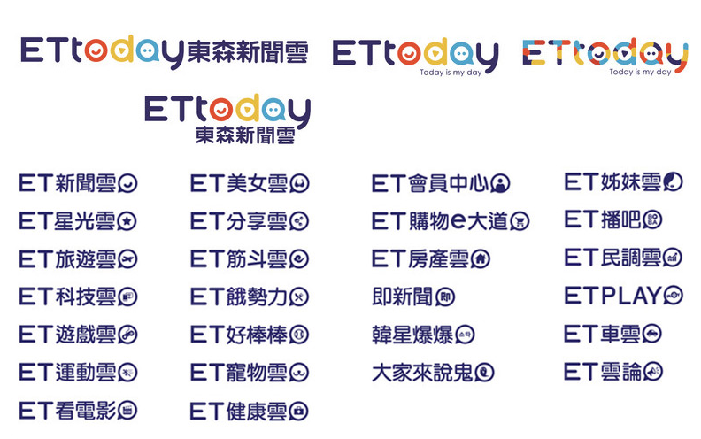 全新的《ETtoday東森新聞云》企業識別標志是用圓角的簡約設計,讓LOGO更容易親近以符合ET目前調性,并結合一些俐落的直角線條,意味在溫和的品牌形象中加入堅毅態度與企圖心。同時,使用多彩鮮艷的顏色,強調年輕多元的感覺;而o、d、a 三個字母以圓圈外型呈現,分別代表分享、影音、互動的品牌精神。