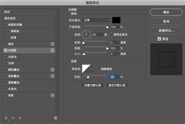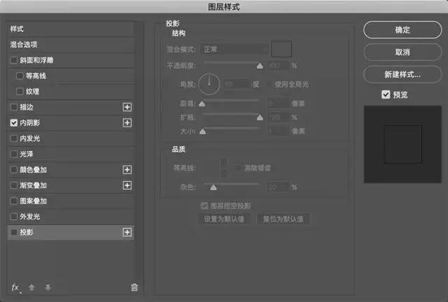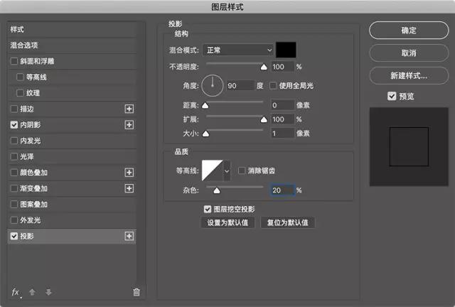 將智能對(duì)象圖層的填充不透明度設(shè)置為0,添加一個(gè)內(nèi)陰影樣式設(shè)置如下。還要?jiǎng)?chuàng)建一個(gè)投影,只有1px的大小。這兩個(gè)陰影一起形成具有粗糙邊緣的筆畫/輪廓效果。