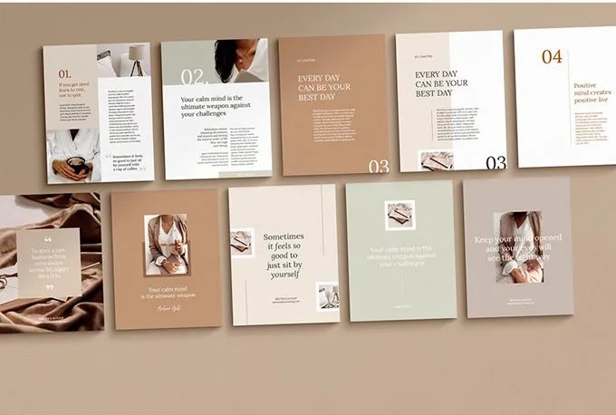 當版面出現圖片數量較多且尺寸比例不同的情況時,可以將大小相近的圖片分布在版面對角線位置,這種對角線呼應的排版方式可以保持畫面結構的平衡性,也能使畫面顯得豐富,富有節奏感。