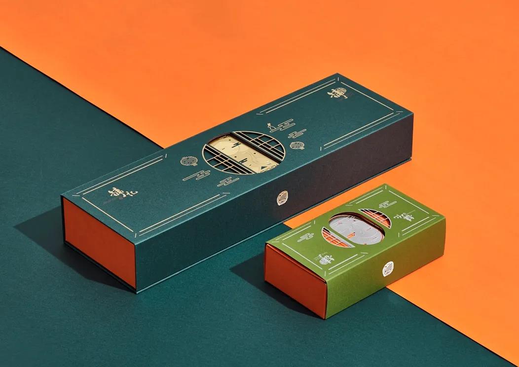 通過融合傳統(tǒng)與創(chuàng)新,新的和舊的,包裝創(chuàng)造了一個簡單而現(xiàn)代的方法,只在一個單一的彩盒上加入了金箔的中秋圖案,重新詮釋了傳統(tǒng)元素,如燈籠和中國傳統(tǒng)窗框。為了使它不僅僅是一個包裝,我們定制了銅書簽簽名鵝賞月作為包裝的一部分。