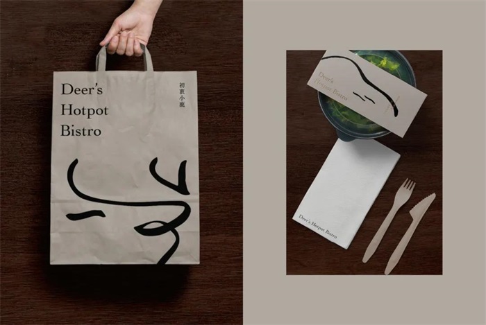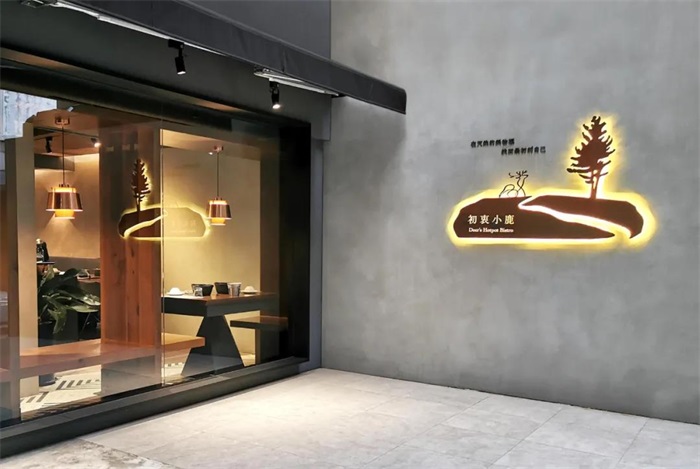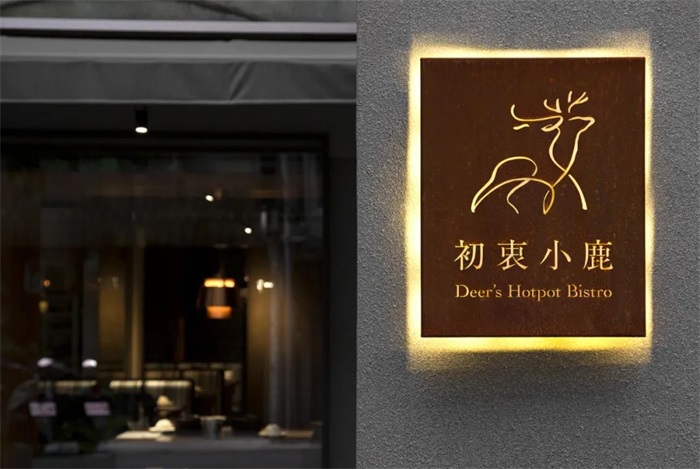 初衷小鹿是一間精品鍋物店,業者將法式料理的經驗帶到火鍋中,秉持對食物原味的追求以及對餐飲服務熱忱的初衷,細心講究到食材產地到料理與空間的每個環節中,相信靠著食物之間的對話,能讓平凡的食材造就出其不平凡而令人驚艷的新風味。設計上以藝術性的線條繪制小鹿的形象,呈現純粹的生命力,在室內材質與印刷物上采用大量的自然元素:寬敞的花園、真皮制菜單、柚木菜盤、鑄鐵招牌、原木桌面與桌牌,以大量原木、石材、皮革、金屬呼應品牌的核心價值,也希望傳遞更細膩的品牌溫度。相比一代店年輕的品牌個性,經過兩年多的洗禮,蛻變為更成熟的小鹿。