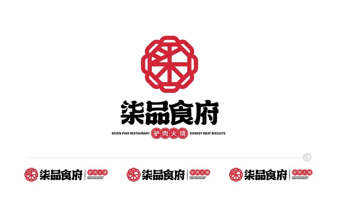 驢肉火燒是華北地區(qū)極為流行的傳統(tǒng)小吃,華北地區(qū)的大街小巷隨處可見驢肉火燒的店鋪,驢肉也蘊(yùn)含著極高的營養(yǎng)價(jià)值。柒品食府的LOGO圖形提取了花窗的元素,結(jié)合名稱的首字“柒”抽象而成,是比較古典的感覺,注重打造品牌的符號(hào)文化。而文字的筆劃結(jié)束處的上揚(yáng)或下鉤,令字形呈現(xiàn)出比較輕俏的感覺,圖形與文字,更像是傳統(tǒng)與現(xiàn)代的撞擊。LOGO有著不同的組合樣式,橫版組合樣式重在突出符號(hào)和名稱,而豎版組合樣式則側(cè)重展現(xiàn)名稱和品類,圖形符號(hào)作為點(diǎn)綴,使LOGO的整體呈現(xiàn)更加和諧。
