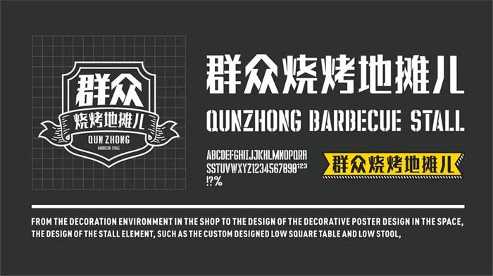 這個燒烤品牌是基于群眾的定位而進行命名的,群眾燒烤地攤兒,既表明品牌是面向大眾的、百姓的,在價格上也是親民的,同時又體現街頭市井文化,突出燒烤品類接地氣的品類屬性。品牌的LOGO標志采用了徽章式圖標,徽章與盾牌符號相結合,體現食品的安全性;紅旗飄帶體現革命屬性,也象征著只是一次燒烤改革;群眾二字格外顯眼,強調品牌的大眾親民,這些元素重新組合,構成超級圖標。革命是品牌的主題,“為了群眾,地攤兒革命”,是對地攤兒燒烤中觸發的衛生問題進行的改革,“以前街邊找,現在屋里烤”是革命后的成果,用簡單直白的話語,說清品牌的革命方向。將地攤兒文化轉移到室內,氛圍不能少,基于大眾地攤定位,以生活中的男孩、女孩、燒烤大叔等市井人物為形象,以及地攤兒的場景運用插畫的形式情景再現,還原生動有趣的地攤兒盛景。生動有趣的形象搭配俏皮的地攤兒方言,一切以群眾為中心,產品可靠、價格實惠,營造地攤兒熱鬧有趣的氛圍。用半寫實的表現手法來呈現地攤兒產品,虛實之間,盡是對地攤兒燒烤文化的喜愛和重視。