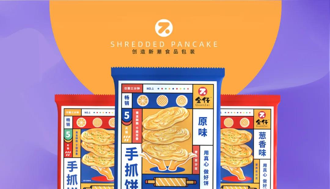 不只是在夜市才見得到的手抓餅包裝,畢竟現(xiàn)在的超市也能看到愈發(fā)多的,地方小吃被包裝成零食模樣,顏值上自然要更講究創(chuàng)意和突破了~