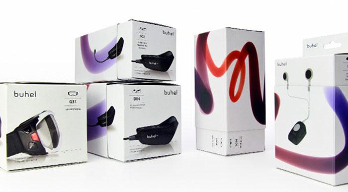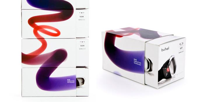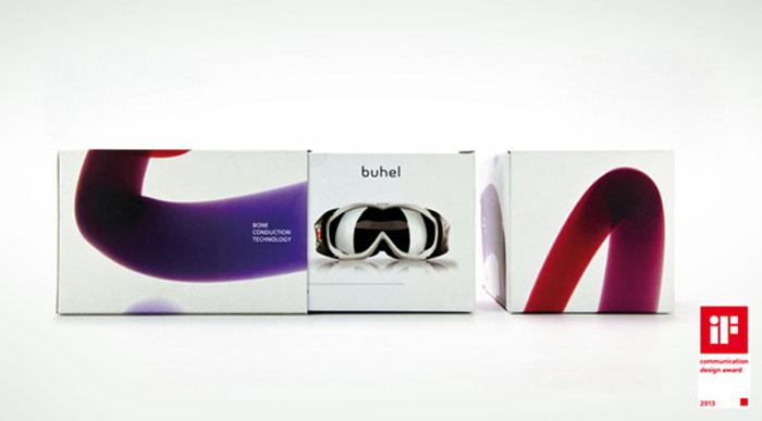 應用的Buhel-骨傳導技術在產品包裝上的圖形設計規則。該項目贏得2013-IF通訊設計獎。