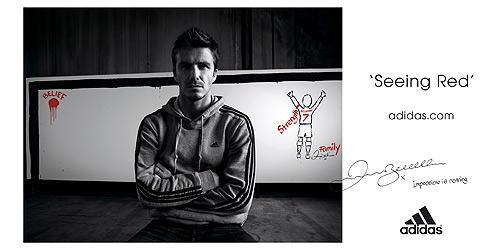阿迪正在發布的幾個廣告極有創意,分別是貝克漢姆、阿里納斯、馬曉旭等作為代言人的現身說法。所有故事都有明星本人親手描畫的形式解決,最重要的故事用簡單的幾句話來講述,你會馬上明白明星的背后有著眾多“沒有不可能”。 周日下午,很多路人圍在西單地鐵地下一層,紛紛用相機和手機拍下阿迪的廣告畫面。