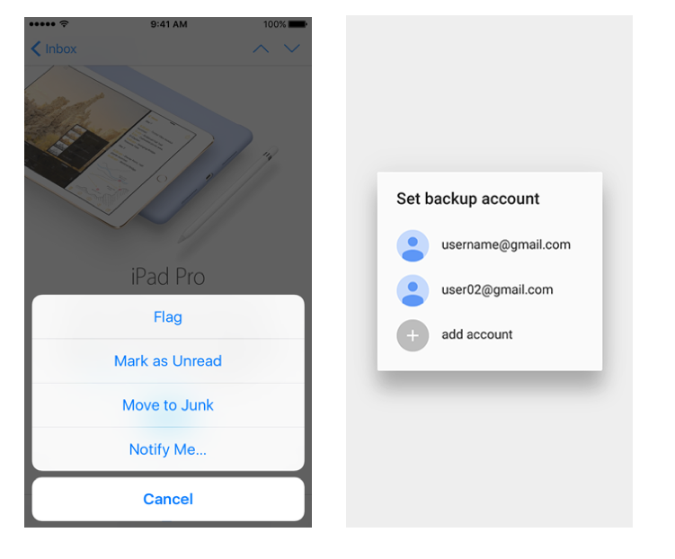 左:iOS上拉菜單; 右:MD簡易彈框