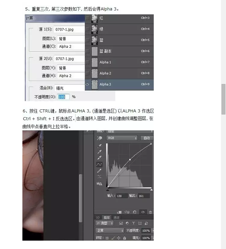 本教程介紹一種比較綜合的人物磨皮祛斑方法。主要是用計算、通道、曲線、模糊濾鏡等來去斑。大致思路:先選擇合適的通道并復制,然后用計算及濾鏡把斑點處理明顯,得到斑點的選區后再用曲線調亮就可以消除斑點。后期再用模糊濾鏡,修復畫筆等微調即可。