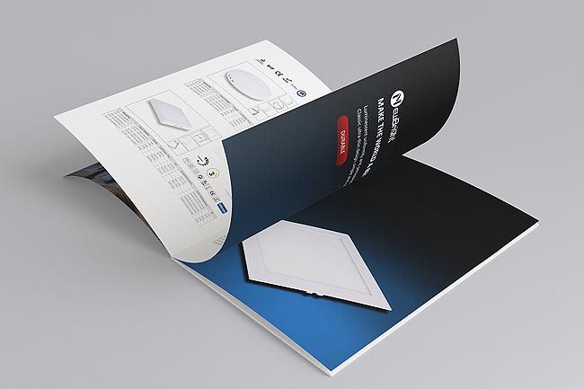 照明產品直接在封面展示嗎?這種設計方法并非總是管用。企業進入品牌塑造階段以后更多的是讓用戶記住你這個品牌,進而逐步通過產品來積累信任度。因此封面上不必面面俱到羅列照明產品,后續內文有足夠的空間給與設計師充分的發揮。照明產品宣傳冊封面以簡潔的風格,讓LOGO優先進入用戶的視野,并且在色彩上進一步統一協調,如果需要圖片素材配合,可以設計一張富有意境的家居環境照片,從而使得整本產品宣傳冊更富有想象的空間。