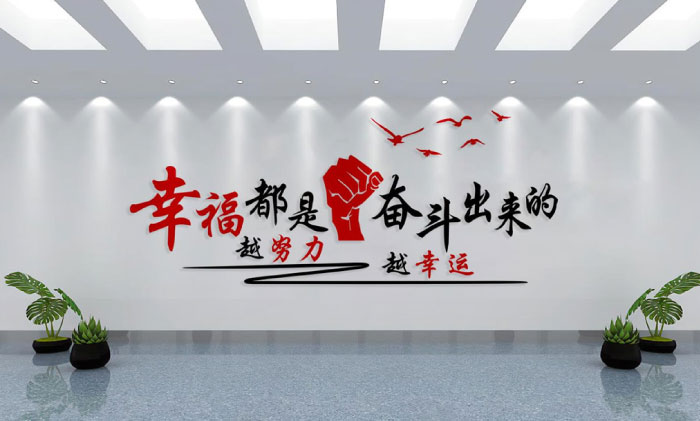 其次,公司辦公室的墻面布置一定要突出對員工的重視,而不是各種條條框框的規(guī)章制度!如各種激勵員工的標(biāo)語,團(tuán)隊精神標(biāo)語,形式上最好豐富多樣,而不是簡單的文字,如采用動物版,漫畫版,表達(dá)的內(nèi)容更容易被員工接受!企業(yè)文化墻可以提高團(tuán)隊凝聚力,執(zhí)行力,激勵員工積極開展工作,統(tǒng)一部門目標(biāo),提高工作效率,同時時刻提醒員工的工作計劃及規(guī)則制度等等。