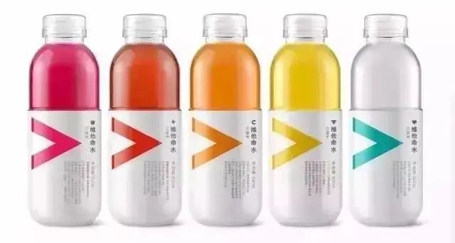 還有后來改版的維他命水系列,用“V”作為視覺核心,也讓人映像深刻