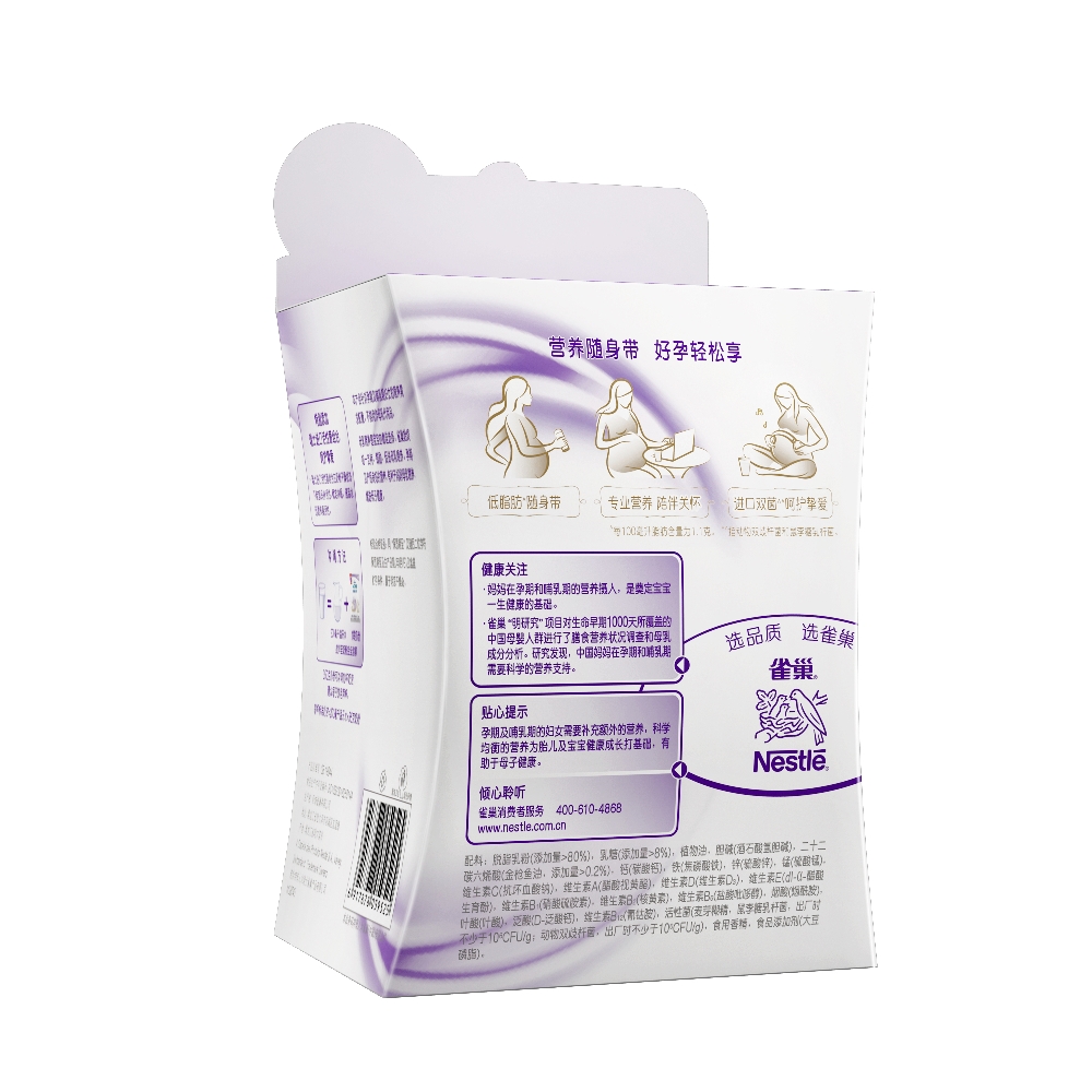 雀巢媽媽®奶粉獨立裝,這款奶粉的目標消費者是孕期及哺乳期媽媽。隨著中國城市化率持續增長,80%都是工作型媽媽,她們更追求高效便捷的生活方式來適應她們快速的生活節奏。