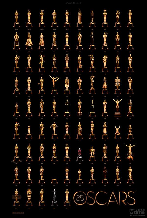 就算你是個(gè)瞧不上奧斯卡學(xué)院獎(jiǎng)的人,你也會(huì)愛死畫家奧利·摩斯為第85屆奧斯卡設(shè)計(jì)的官方海報(bào)的。盡管早前就有很多人為奧斯卡最佳影片做過藝術(shù)海報(bào)的設(shè)計(jì),但奧利·摩斯用一張海報(bào)涵蓋了85年來所有人的工作,這張海報(bào)上的85座小金人分別代表85年來的學(xué)院獎(jiǎng)最佳影片,奧利·摩斯用極端簡(jiǎn)約的元素,雕刻了每一年奧斯卡時(shí)光,和那些最佳影片。