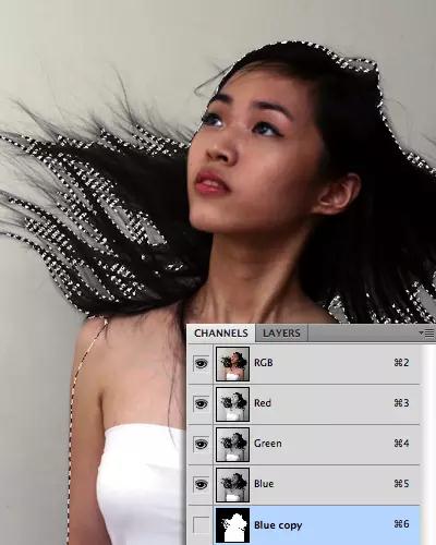 在選擇比較復(fù)雜的對(duì)象比如頭發(fā)時(shí),使用通道工具相對(duì)比較簡(jiǎn)便。