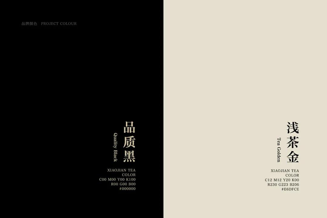 小簡茶提倡慢下來,給自己一杯茶的時間,與自己與親人朋友聊聊天、敘敘舊。LOGO以純文字為主,字體設計具有傳統簡中式感受,將硬朗現代的骨骼變化感展現淋漓盡致,在文化感和現代活力感之間取得平衡。筆畫間的倒圓口增添了靈動性,使得整體LOGO帶給人輕松的感覺。品牌色使用具有力量感的品質黑和具有文韻舒適感的淺茶金,給予消費者溫暖的、值得信賴的、經典的感受。