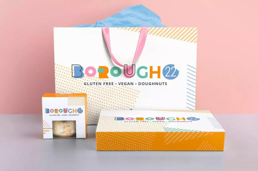 Jackdaw公司設(shè)計(jì)了三種不同的盒子尺寸:小的(單個(gè)甜甜圈)、中號(hào)的(半打)和大的(一打),還有一種無縫圖案的防油紙,緊貼在盒子里。此外,該公司還設(shè)計(jì)了一款高級(jí)紙袋,可以舒適地裝下甜甜圈的包裝盒,并確保甜甜圈是在剛出爐的情況下送出的。新的身份和包裝吸引了廣泛的觀眾,并推動(dòng)甜甜圈的獨(dú)特和令人興奮的味道組合。