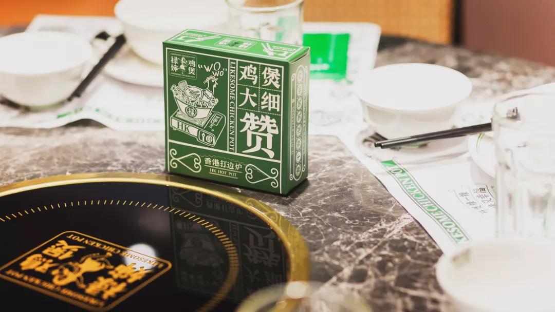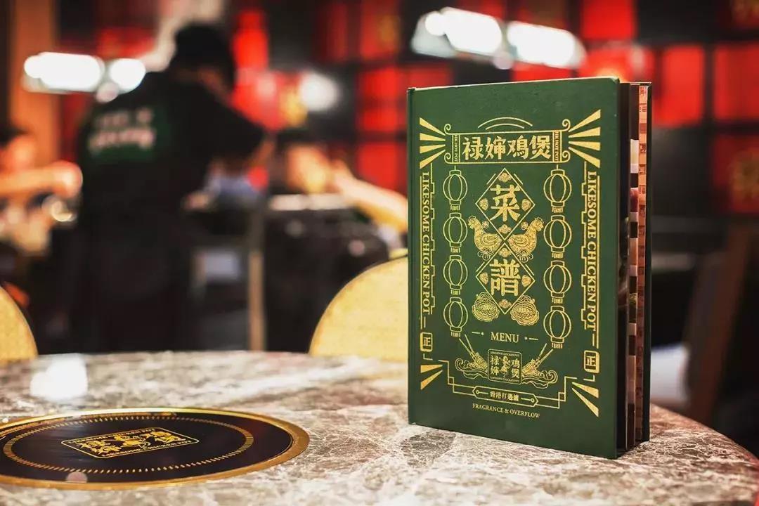 祿嬸雞煲是一家港式火鍋餐廳,因此從VI到空間設計都采用港式風格,復古懷舊中帶有一點輕奢的調性。