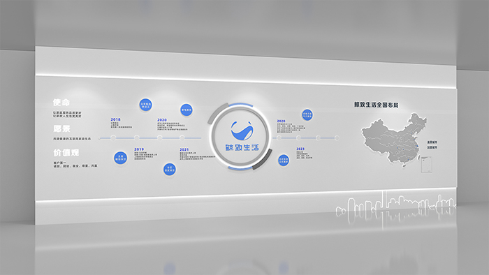 在設(shè)計(jì)文化墻之前,我們需要首先定位企業(yè)文化,并構(gòu)思如何整體布局。同時(shí),將主體與子區(qū)域顯示的內(nèi)容相結(jié)合,完成企業(yè)經(jīng)營(yíng)理念和服務(wù)理念的核心內(nèi)容,同時(shí)色彩與照明與文化墻巧妙融合。